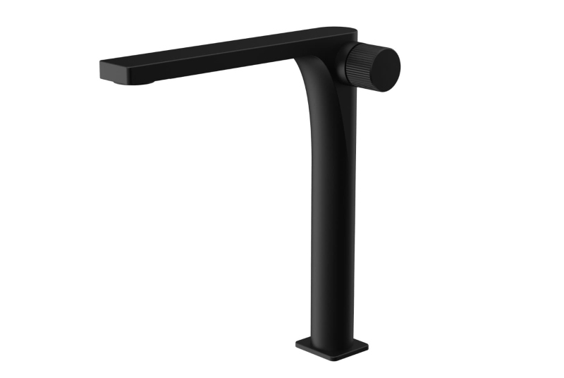 Páková stojanková vysoká umývadlová batéria bez výpuste vo farbe čierna matná. S matným povrchom.
