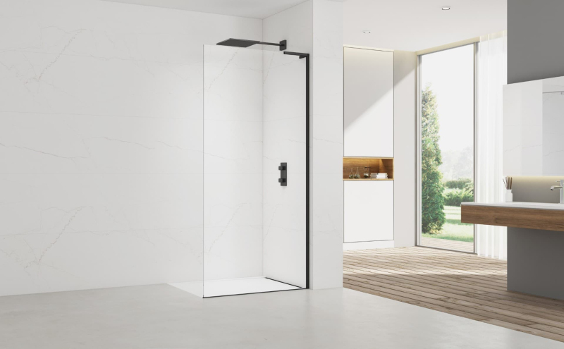 Sprchová zástena walk-in s profilmi a zavetrovaním v čiernom matnom prevedení, výplň je z číreho skla bez dekoru. Produkt je opatrený povrchovou úpravou Easy Clean, ktorá uľahčuje čistenie a minimalizuje usadzovanie vodného kameňa. Nedá sa otvoriť - pevný systém. Určenie - pravá orientácia.