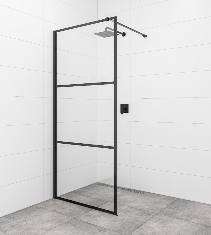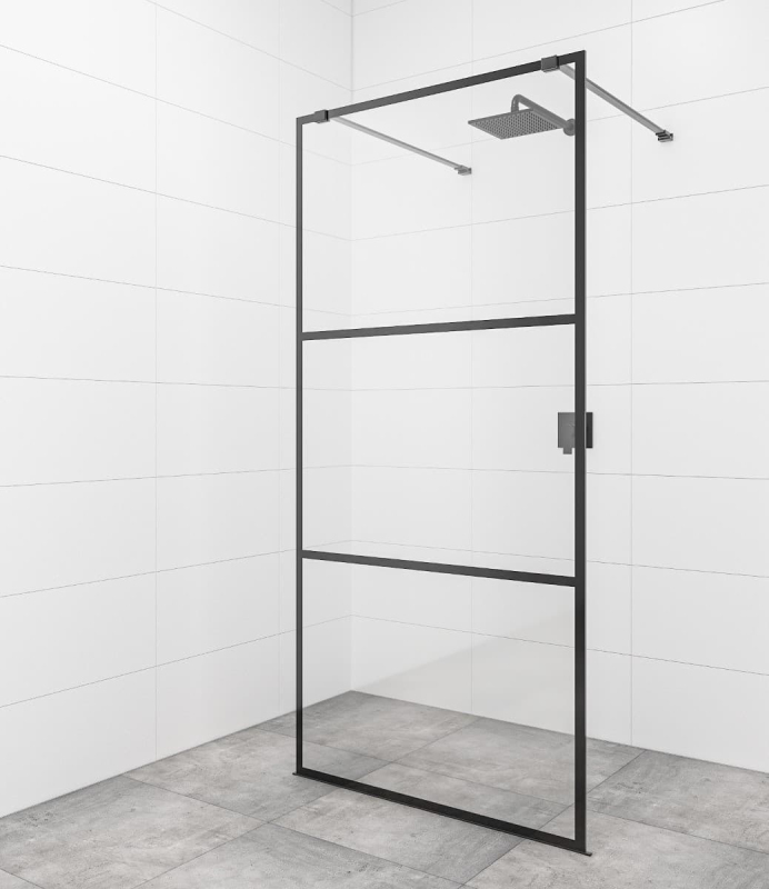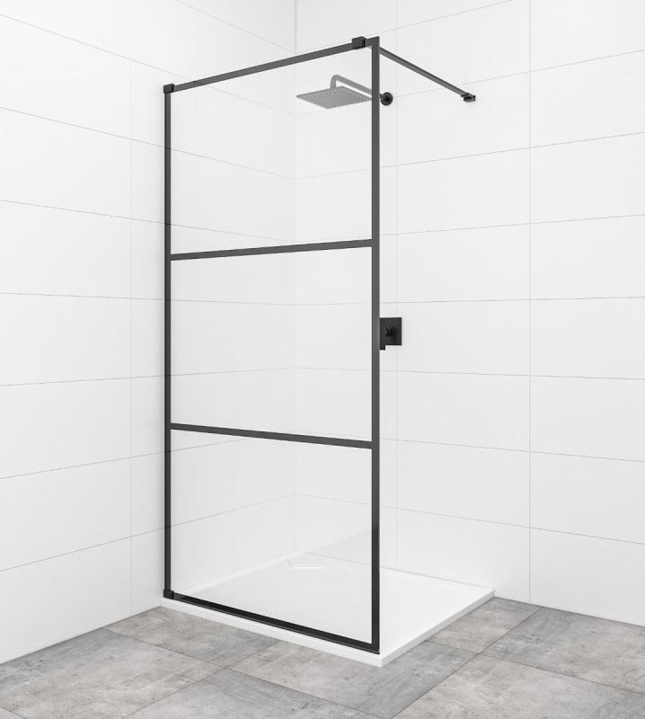 Sprchová zástena walk-in bez profilov a zavetrovania v čiernom matnom prevedení, výplň je zo skla s prúžkami a je opatrená dekorom Potlač. Produkt je opatrený povrchovou úpravou Easy Clean, ktorá uľahčuje čistenie a minimalizuje usadzovanie vodného kameňa. Nedá sa otvoriť - pevný systém. Určenie - ľavá aj pravá orientácia.