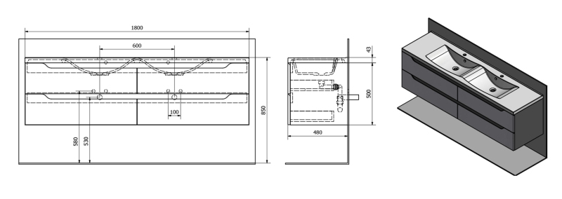 WAVE dvojumývadlová skrinka 179,7x50x47,8cm, biela/dub collingwood WA180-3019