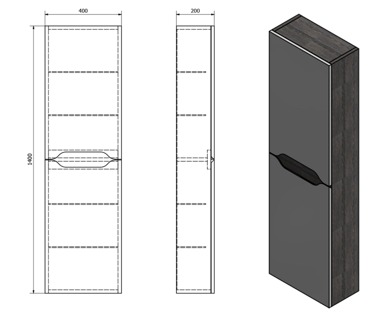 WAVE skrinka vysoká 40x140x20cm, ľavá/pravá, biela/dub cuneo WA250-3025 59757