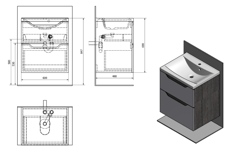 WAVE umývadlová skrinka 60x65x47, 8cm, biela/dub cuneo WA060-3025