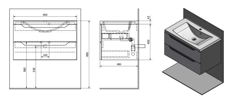 WAVE umývadlová skrinka 79,7x45x47,8cm, agila