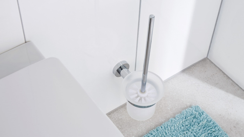 Štetka na toaletnú misu tesa® Loxx je nielen praktická, ale vďaka lepiacemu montážnemu riešeniu ju tiež môžete umiestniť kdekoľvek. Vŕtanie nie je nutné, nedochádza teda k poškodeniu stien alebo obkladov. Vytvrdnutie lepidla trvá 12 hodín. Vďaka nádobke zo saténového skla a chrómovanému povrchu na konzole a držadle sa sada zaoblenej štetky vyznačuje hravou krásou. Pre ľahké čistenie je možné sklenenú nádobku vybrať. Hlavicu štetky je možné odskrutkovať. Držiak štetky je možné kedykoľvek bez stôp demontovať. S novým adaptérom BK20 je ľahko použiteľný na inom mieste.
