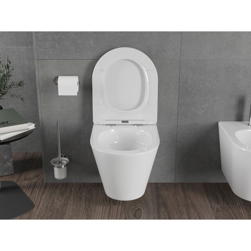 WC misa Mexen Rico Rimless Tornado s úzkym sedadlom s tlmeným dovieraním, duroplast, lesklá biela - 30720400T