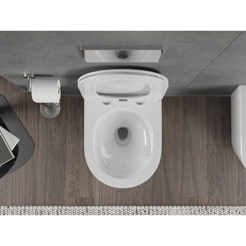 Špecifikácia produktu: Rozmer: 48x36x37 cm Montáž: Závesná Splachovanie: Bez okraja Tornado Farba: Lesklá biela Materiál: Sanitárna keramika Typ sedátka: S pomalým dovieraním Farba: Lesklá biela Materiál: Duroplast Tenké prevedenie: Áno Jednoduché uvoľnenie: Áno Kovové pánty: