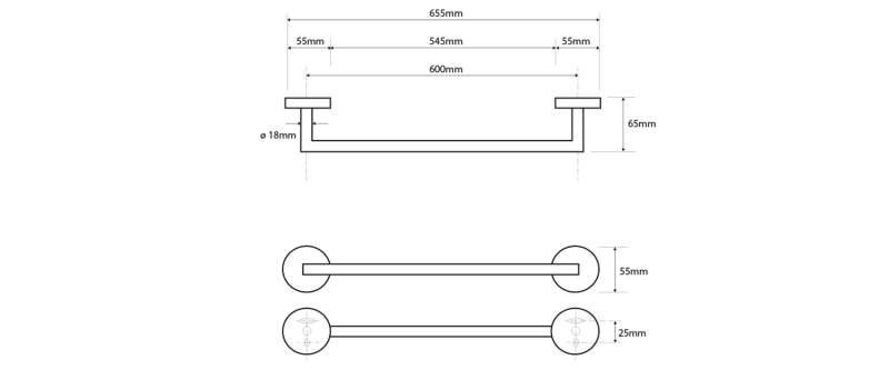 X-ROUND COPPER držiak uterákov 600mm, meď mat