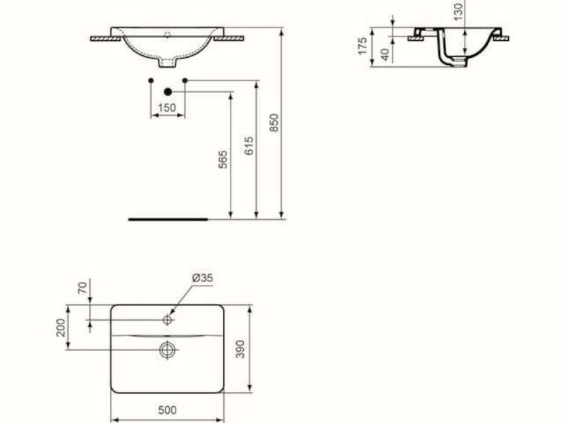 Zápustné umývadlo Ideal Standard Connect 40x51 cm otvor pre batériu uprostred E504301