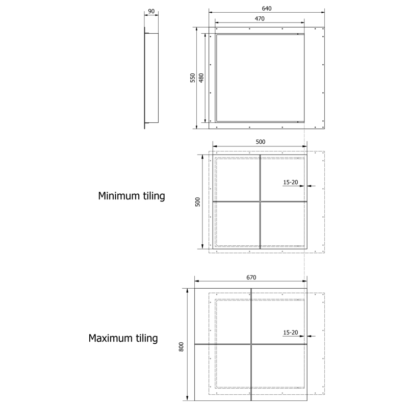 Balení obsahuje: dvířka v rámu, instalační prvky, ukončovací PVC lišta 8 a 10 mm.