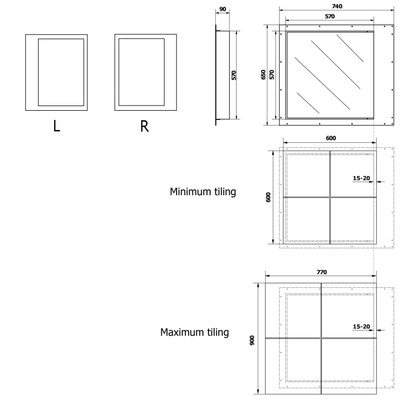 Balení obsahuje: dvířka v rámu, instalační prvky, ukončovací PVC lišta 8 a 10 mm.