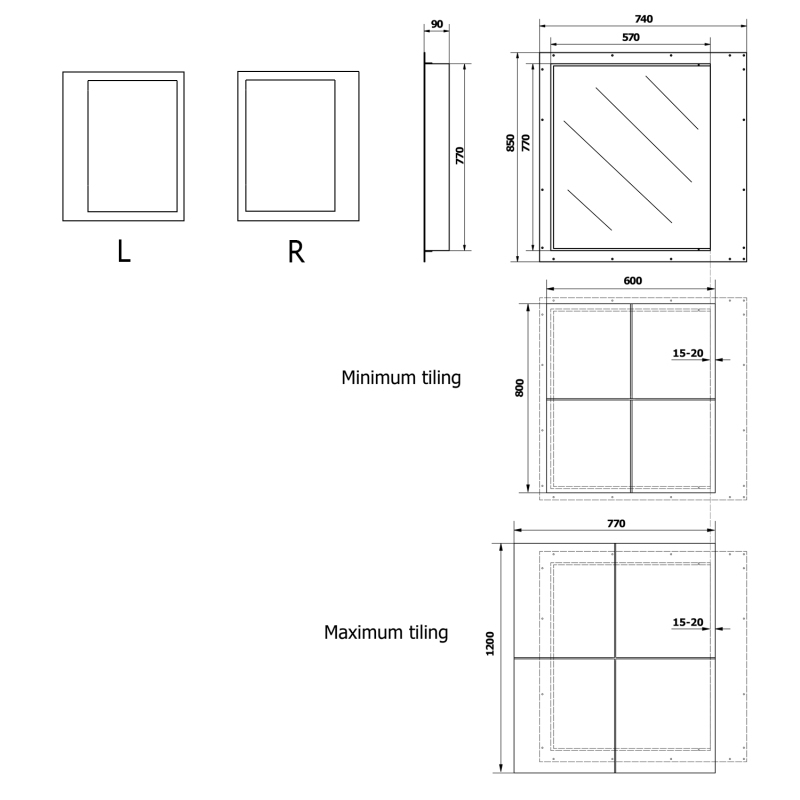 Balení obsahuje: dvířka v rámu, instalační prvky, ukončovací PVC lišta 8 a 10 mm.