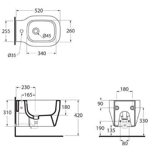 Závěsný bidet GLAZE 52 × 36 cm - Bez upevňovací sady