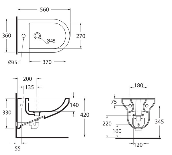 - 560 × 360 × 330 mm