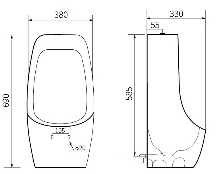 Závesný pisoár Mexen Oliver, biely - 37016900
