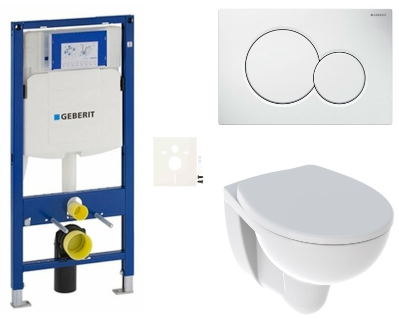 Závesný wc set - sada obsahuje: WC bez splachovacieho okruhu, modul Duofix do ľahkých stien/predstenová, WC nádržku Geberit, ovládacie tlačidlo Delta, WC sedátko. WC doska je vyrobená z materiálu duroplast. Ovládacie tlačidlo je z materiálu plast a je vo farebnom prevedení biela lesklý.