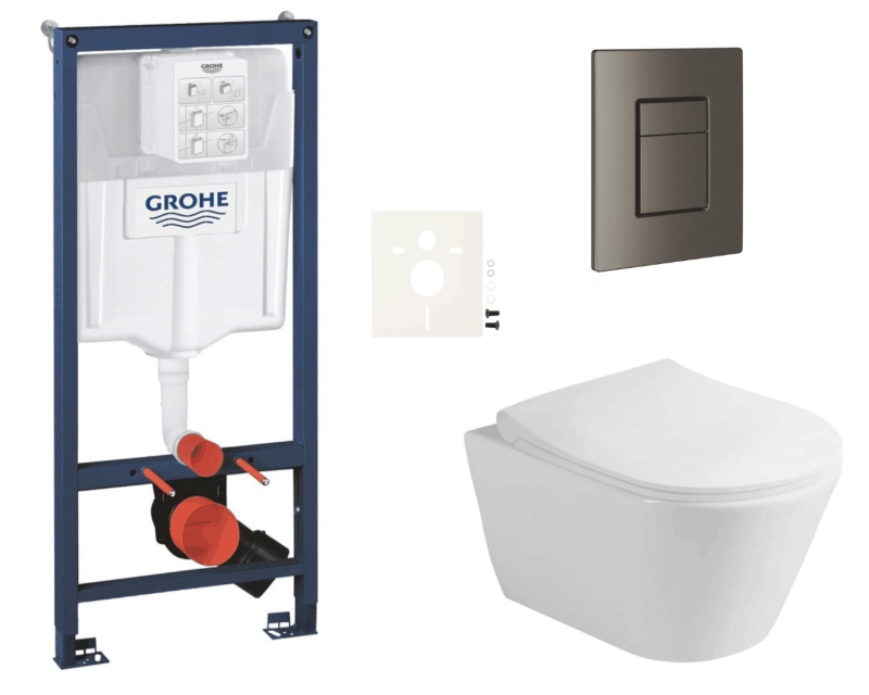 Závesný wc set - sada obsahuje: modul do ľahkých stien/predstenová montáž, WC nádržku Grohe, ovládacie tlačidlo Skate Cosmopolitan a WC sedátko.
