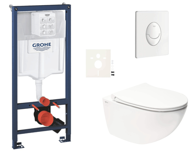 Závesný wc set - sada obsahuje: modul do ľahkých stien / predstenová montáž, WC nádržku Grohe, ovládacie tlačidlo Skate Air a WC sedátko.