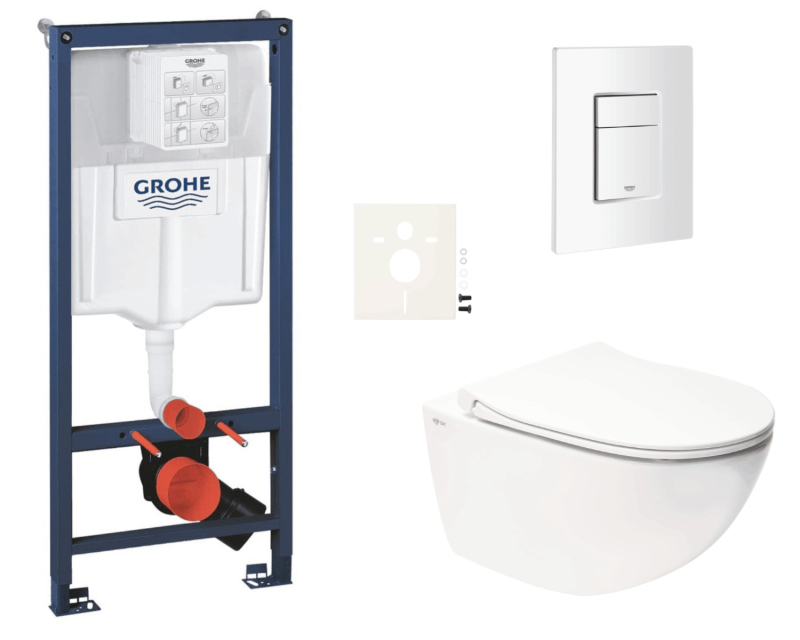 Závesný wc set - sada obsahuje: modul do ľahkých stien/predstenová montáž, WC nádržku Grohe, ovládacie tlačidlo Skate Cosmopolitan a WC sedátko.