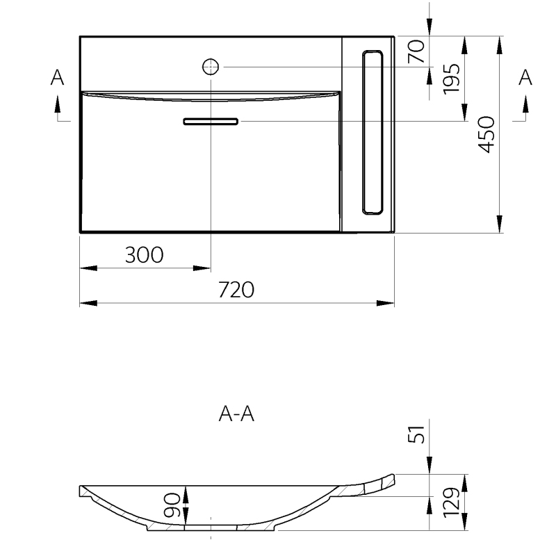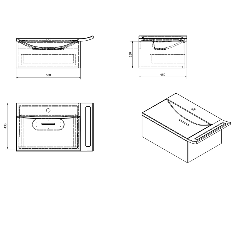 ZEUS umývadlová skrinka vr. sifónu a umývadla 60x26x45 cm, čierna mat ZE070-3535-01
