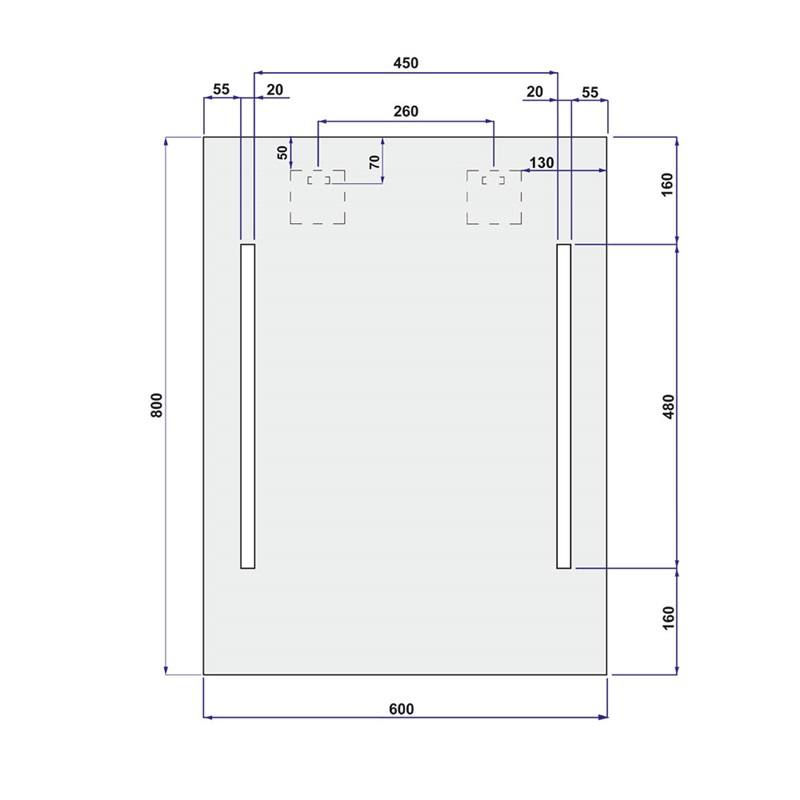 Zrkadlo 600x800 mm, osvetlenie, tlačidlový vypínač CN702