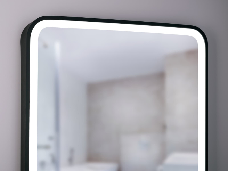 Obdĺžnikové zrkadlo s LED osvetlením so senzorom o rozmere 60x80 cm. V čiernej farbe. Farebná teplota osvetlenia je 4 000 K (neutrálna biela). S krytím IP44, je chránené proti striekajúcej vode. Orientácia zrkadla na výšku aj na šírku.
