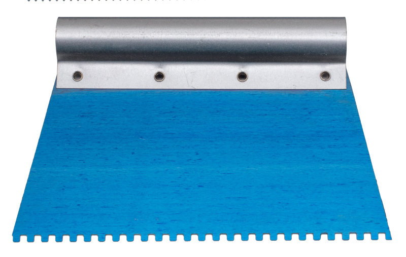 Zubová stierka na aplikáciu lepidiel na lepenie drevených podláh.
