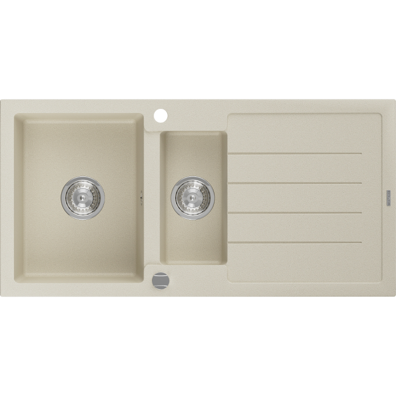 Špecifikácia produktu: Rozmer: 1000x500x200 mm Hĺbka drezu: 190 mm (väčšia), 115 mm (menšia) Rozmery drezu: 430x330 mm (väčšia), 340x170 mm (menšia) Priemer odtoku: ø90 mm Typ: 1,5 Farba: Béžová Povrchová úprava sifónu: Chróm Prepadový otvor: Áno Otvor pre batériu: Áno Automatický sifón súčasťou balenia Vysoká odolnosť proti poškriabaniu a zmene farby Odolnosť voči teplotným šokom Ľahko čistiteľný povrch