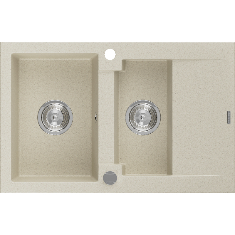 Žulový drez Mexen Gaspar 1,5-drezový s odkvapkávačom 737 x 475 mm, béžový, chrómovaný sifón - 6507731505-69