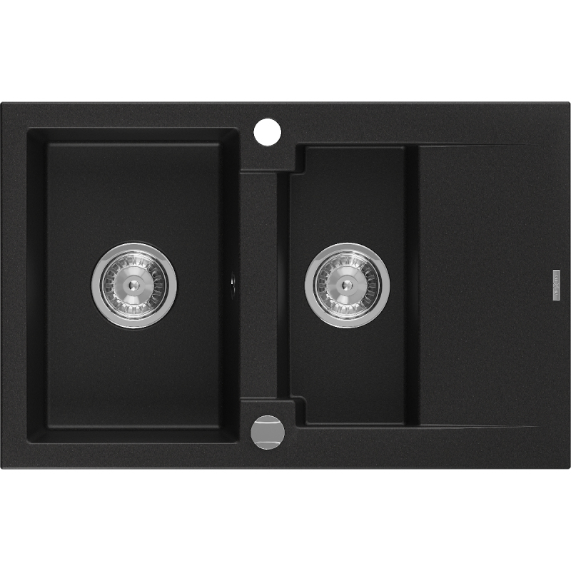 Žulový drez Mexen Gaspar 1,5-drezový s odkvapkávačom 737 x 475 mm, čierny, chrómovaný sifón - 6507731505-77