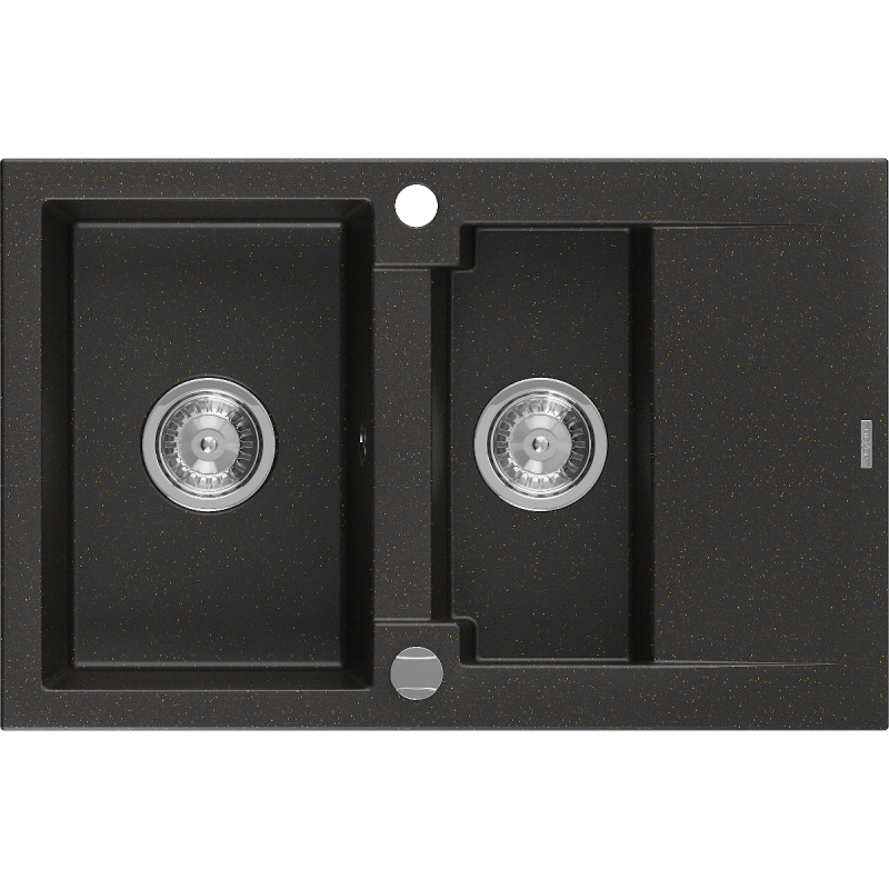 Žulový drez Mexen Gaspar 1,5 drezu s odkvapkávačom 737 x 475 mm, čierna / zlatá metalíza, chrómovaný sifón - 6507731505-75