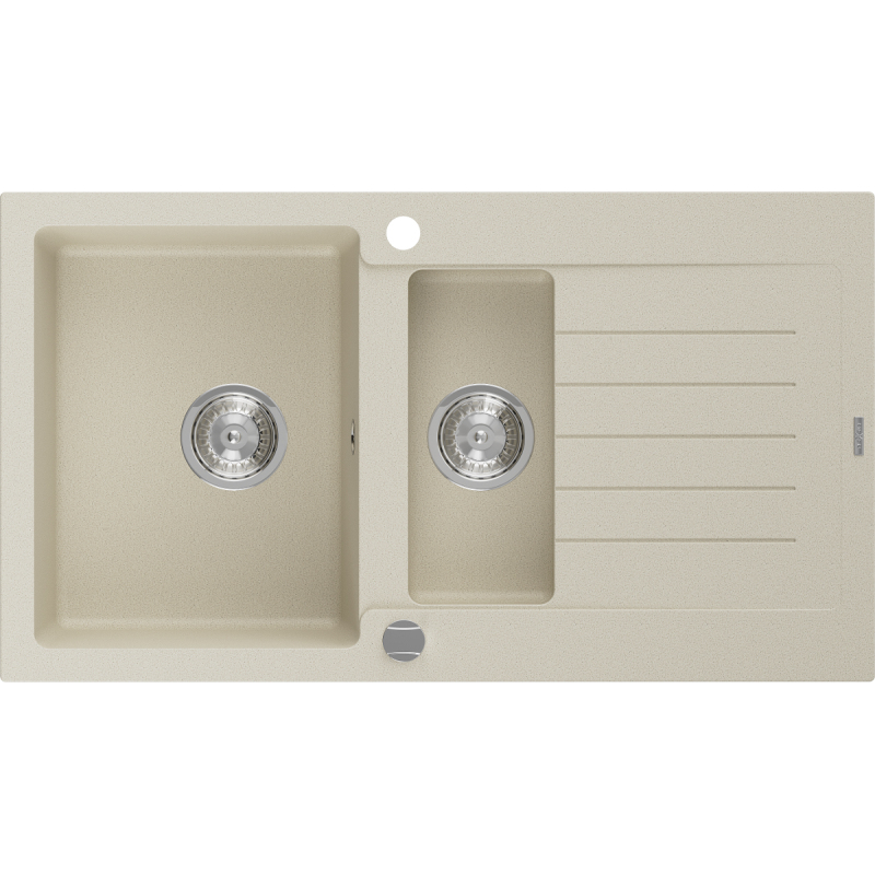 Špecifikácia produktu: Rozmer: 900x505x200 mm Hĺbka drezu: 180 mm (väčšia), 115 mm (menšia) Rozmery drezu: 435x335 mm (väčšia), 345x150 mm (menšia) Priemer odtoku: ø90 mm Typ: 1,5 diel Farba: Béžová Povrchová úprava sifónu: Chróm Prepadový otvor: Áno Otvor pre batériu: Áno Automatický sifón súčasťou balenia Vysoká odolnosť proti poškriabaniu a zmene farby Odolnosť voči teplotným šokom Povrch pre ľahké čistenie Dva ďalšie frézované otvory pre samodierovanie ø35