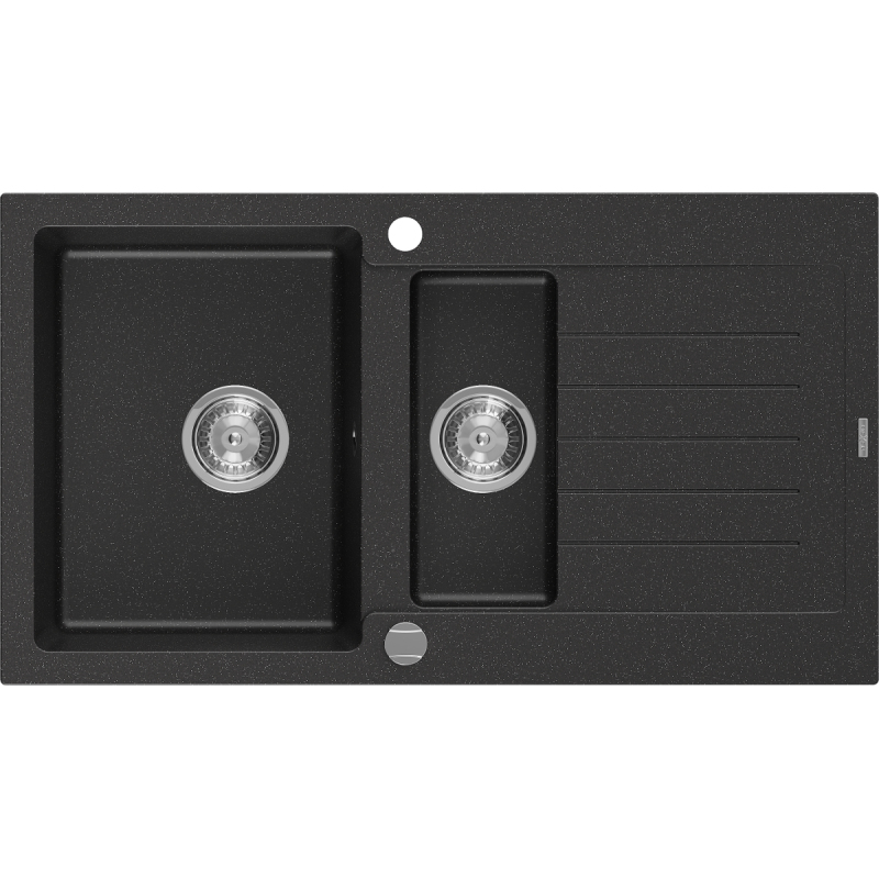 Žulový drez Mexen Matias 1,5 drezu s odkvapkávačom 900 x 505 mm, čierna/strieborná metalíza, chrómovaný sifón - 6502901505-73